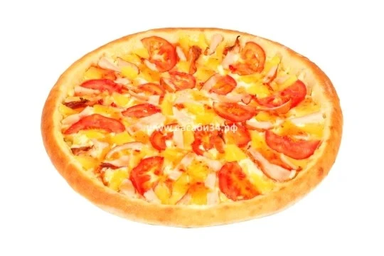соус белый, цыплёнок копченый, ананас, соус сладкий чили, помидор, моцарелла